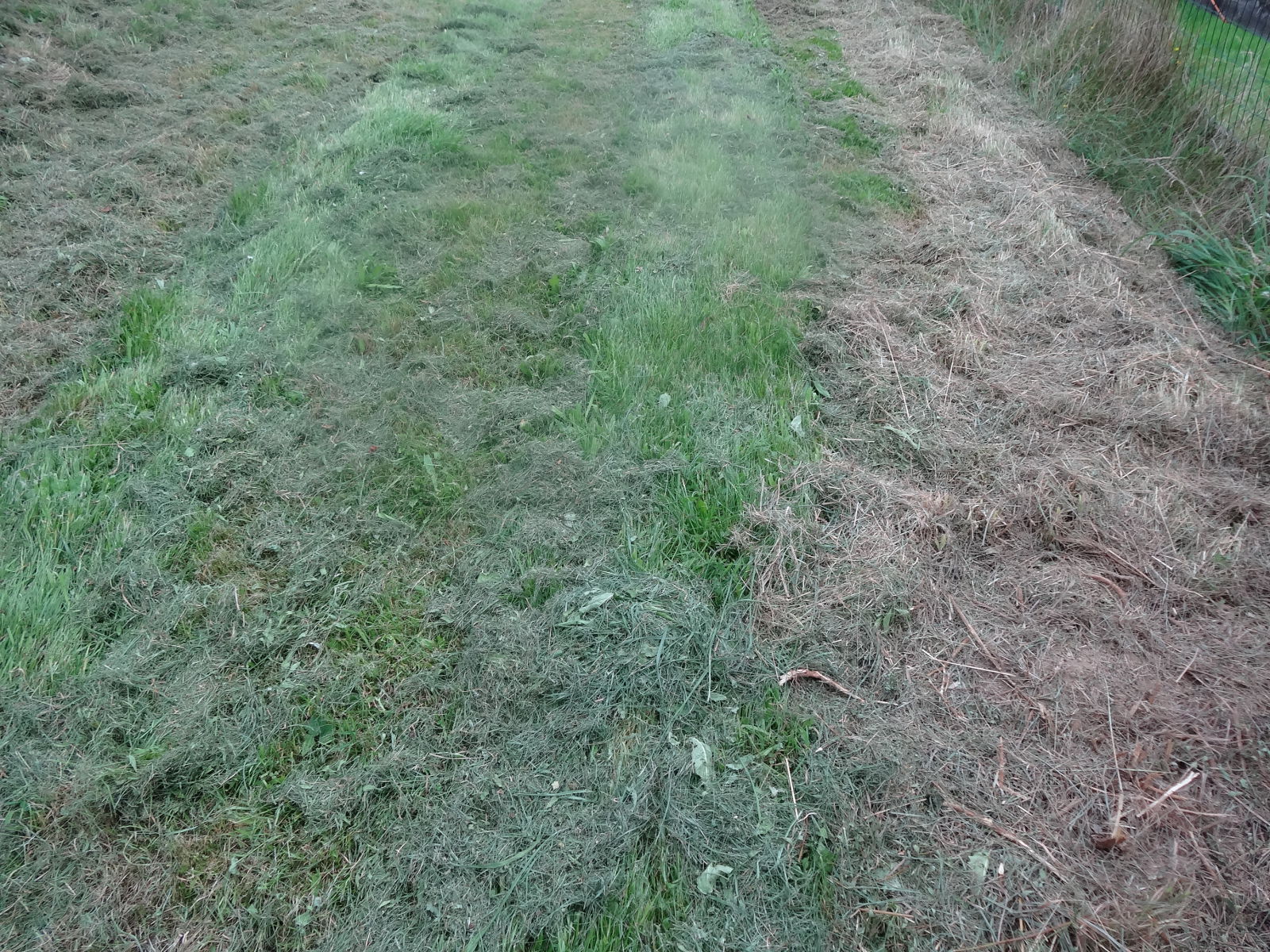 Je coupe ras : en fait, je passe avec ma tondeuse autoportée (eh oui, je pousse parfois le "moindre effort" un peu loin). Mais après une fauche cela va aussi...