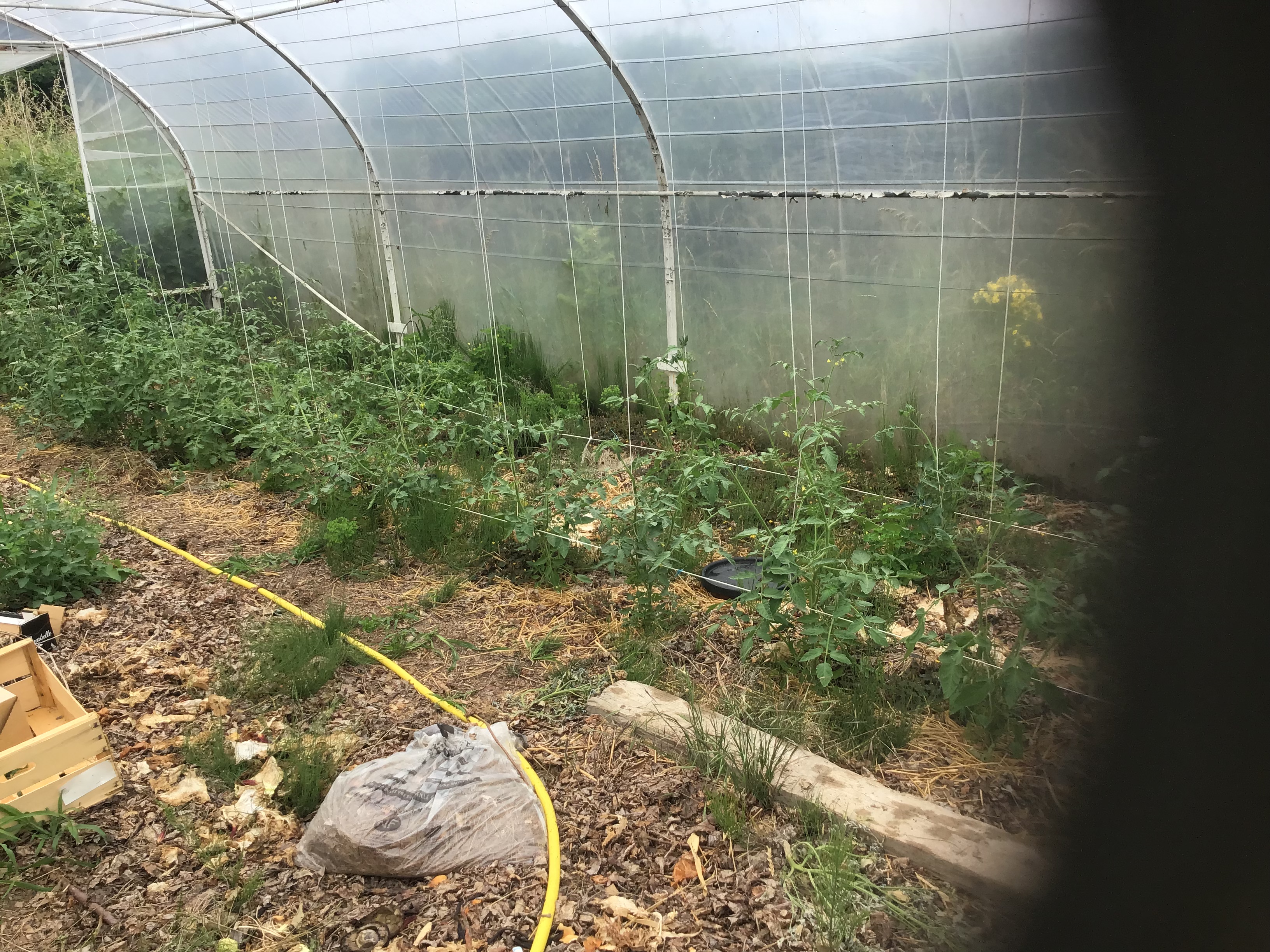 Voici des petites nouvelles de chez moi :wink: au niveau de la serre beaucoup de satisfaction les plants de tomates se développent super bien, je n’en ai jamais eu d’aussi beaux, 3 à 4 pieds de perdu mais pour une première année je vais m’en satisfaire :lol: bon j’ai perdu un pied de courgette des piments deux poivrons en feuilles de dentelles. Concernant ma planche de foin: les pommes de terre sont bien sortie, par contre les haricots échec complet cela doit venir des graines car en faisant l’expérience pour mes filles on a mis 12 graines dans une boîte à œufs percés avec terreau seul 1 pied à germer :frown: sinon pour l’arrosage de la serre mes pots de terres (façon Oyas) donnent satisfaction (1 arrosage par semaine plus un peu de gouttes à gouttes)
