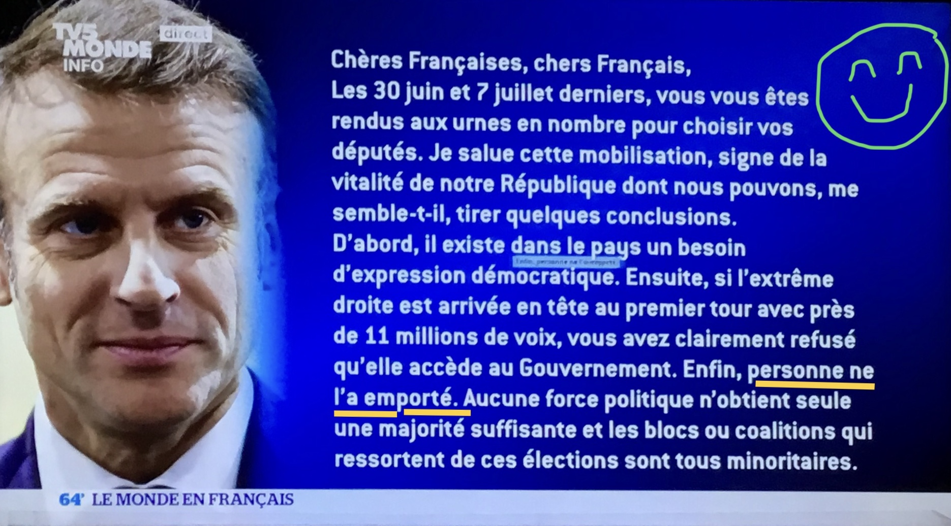 …donc il ne l’a pas emporté LUI-MÊME, donc échec total de sa politique et de son mandat où il a été obligé de saborder son propre groupe (renommé deux fois)