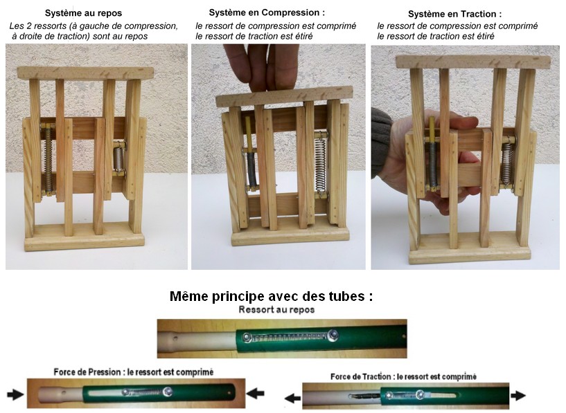(Un indice : l'objet peut se comprimer ou s'étirer, et les 2 ressorts sont présentés dans le même dispositif simplement à titre comparatif : il n'ont aucun effet l'un sur l'autre... Bon, c'est pas très clair comme indice, mais ça rajoute un peu de mystère au système