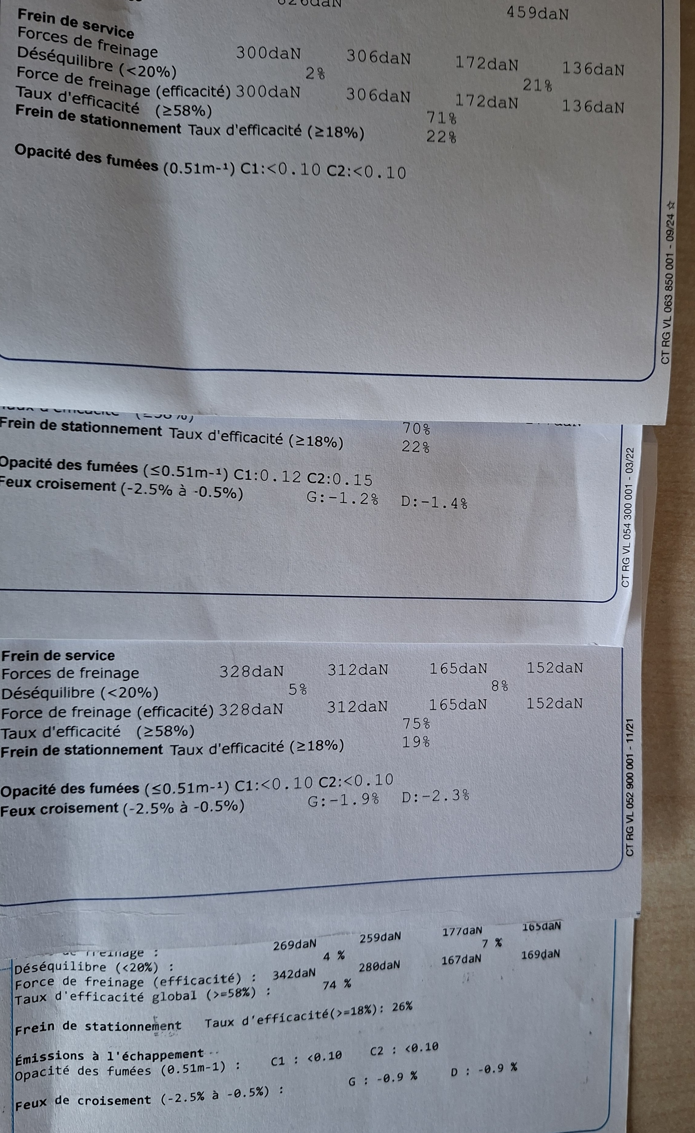 Voici les contrôles techniques depuis six ans, l'opacité des fumées très basse, mais ce véhicule de bientot 15 ans approchant les 200 000 kms (compteur) est équipé d'un filtre à particule d’origine.