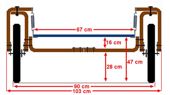 Ceci dit, la hauteur du plateau dépend aussi de la longueur des ressorts de traction utilisés : plus les ressorts des suspensions sont longs, plus le plateau est bas, mais moins il y a de débattement pour les suspensions.
